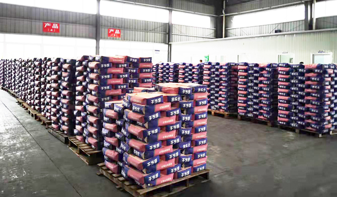 該公司車間占地6000余平米,有四條全自動生產線,有二臺機器手,一臺高位碼垛機,其中有二條專門生產內墻膩子和瓷磚膠,月產能達4000噸,年產能50000余噸.
